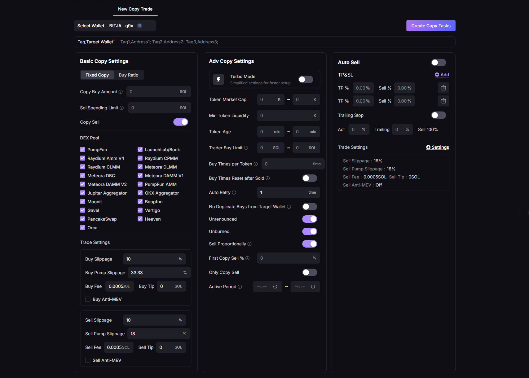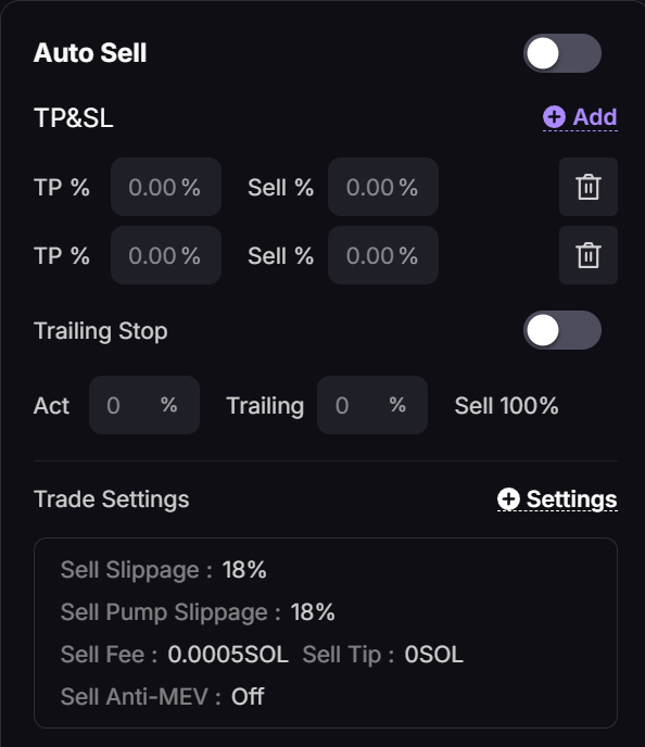 Copy Sell: Copy sell orders, usually following the copied wallet’s sell actions.