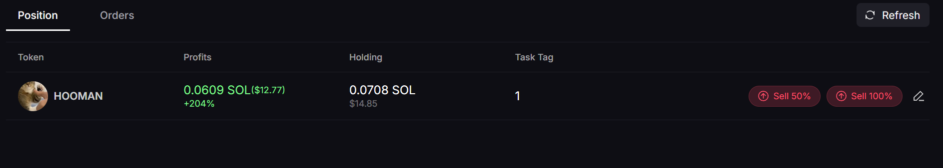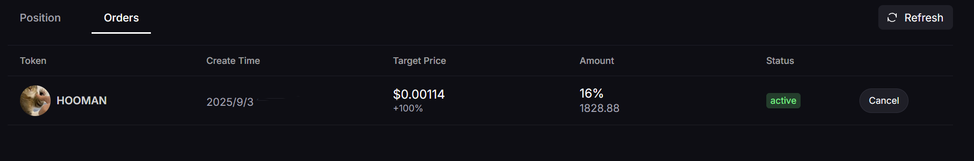 Amount:This field displays two numbers: the percentage of the token currently held relative to the total purchased, and the exact quantity of the token