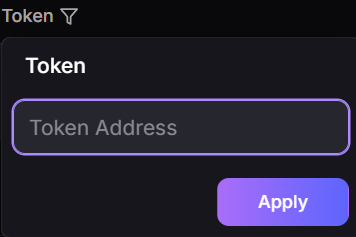 Token | Mostra il simbolo del token, avatar e indirizzo del contratto Le transazioni possono essere filtrate inserendo l'indirizzo del contratto | ![]() |